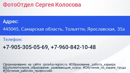 ФотоОтдел Сергея Колосова по адресу 445045, Самарская область, Тольятти, Ярославская, 35а в дальнейшем Организация, размещена в следующих категориях: