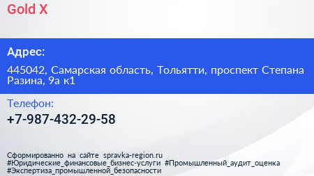 Gold X по адресу 445042, Самарская область, Тольятти, проспект Степана Разина, 9а к1 в дальнейшем Организация, размещена в следующих категориях: