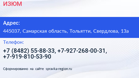 ИЗЮМ по адресу 445037, Самарская область, Тольятти, Свердлова, 13а в дальнейшем Организация, размещена в следующих категориях: