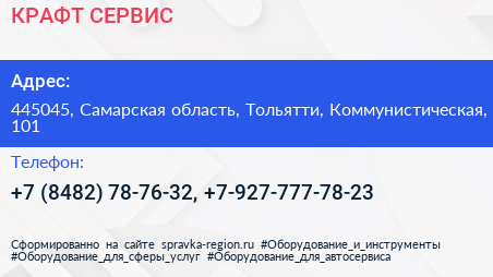 КРАФТ СЕРВИС по адресу 445045, Самарская область, Тольятти, Коммунистическая, 101 в дальнейшем Организация, размещена в следующих категориях: