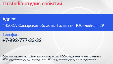 Lb-studio, студия событий по адресу 445037, Самарская область, Тольятти, Юбилейная, 29 в дальнейшем Организация, размещена в следующих категориях: