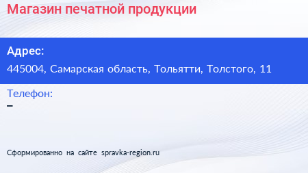 Магазин печатной продукции по адресу 445004, Самарская область, Тольятти, Толстого, 11 в дальнейшем Организация, размещена в следующих категориях: