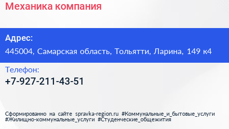 Механика, компания по адресу 445004, Самарская область, Тольятти, Ларина, 149 к4 в дальнейшем Организация, размещена в следующих категориях:
