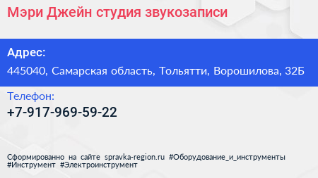 Мэри Джейн, студия звукозаписи по адресу 445040, Самарская область, Тольятти, Ворошилова, 32Б в дальнейшем Организация, размещена в следующих категориях: