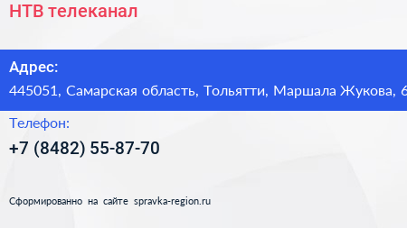 НТВ, телеканал по адресу 445051, Самарская область, Тольятти, Маршала Жукова, 6 в дальнейшем Организация, размещена в следующих категориях: