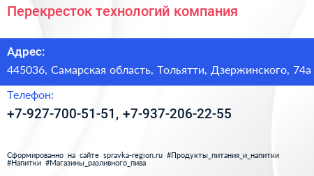 Перекресток технологий, компания по адресу 445036, Самарская область, Тольятти, Дзержинского, 74а в дальнейшем Организация, размещена в следующих категориях: