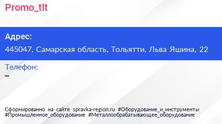 Promo_tlt по адресу 445047, Самарская область, Тольятти, Льва Яшина, 22 в дальнейшем Организация, размещена в следующих категориях: