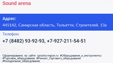Sound-arena по адресу 445142, Самарская область, Тольятти, Строителей, 13а в дальнейшем Организация, размещена в следующих категориях: