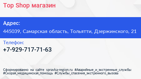 Top Shop, магазин по адресу 445039, Самарская область, Тольятти, Дзержинского, 21 в дальнейшем Организация, размещена в следующих категориях: