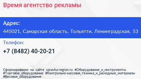 Время, агентство рекламы по адресу 445021, Самарская область, Тольятти, Ленинградская, 53 в дальнейшем Организация, размещена в следующих категориях: