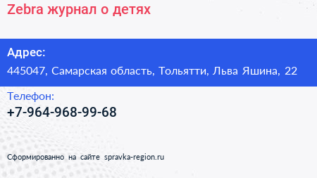 Zebra, журнал о детях по адресу 445047, Самарская область, Тольятти, Льва Яшина, 22 в дальнейшем Организация, размещена в следующих категориях: