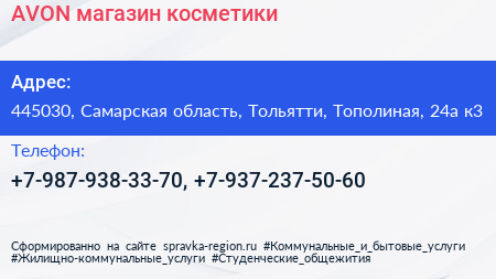 AVON, магазин косметики по адресу 445030, Самарская область, Тольятти, Тополиная, 24а к3 в дальнейшем Организация, размещена в следующих категориях: