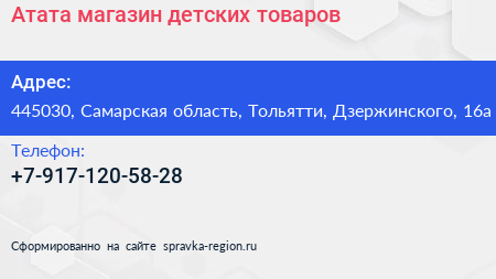 Атата, магазин детских товаров по адресу 445030, Самарская область, Тольятти, Дзержинского, 16а в дальнейшем Организация, размещена в следующих категориях: