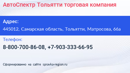 АвтоСпектр Тольятти, торговая компания по адресу 445012, Самарская область, Тольятти, Матросова, 66а в дальнейшем Организация, размещена в следующих категориях: