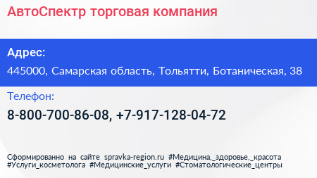 АвтоСпектр, торговая компания по адресу 445000, Самарская область, Тольятти, Ботаническая, 38 в дальнейшем Организация, размещена в следующих категориях: