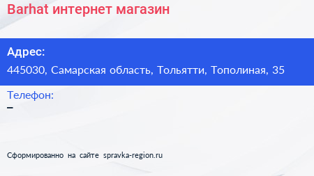 Barhat, интернет-магазин по адресу 445030, Самарская область, Тольятти, Тополиная, 35 в дальнейшем Организация, размещена в следующих категориях: