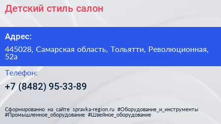 Детский стиль, салон по адресу 445028, Самарская область, Тольятти, Революционная, 52а в дальнейшем Организация, размещена в следующих категориях: