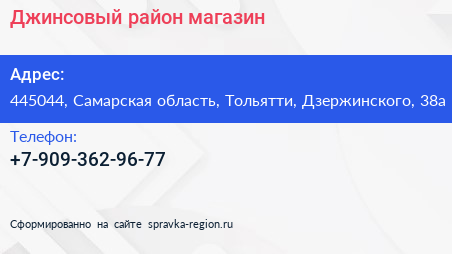 Джинсовый район, магазин по адресу 445044, Самарская область, Тольятти, Дзержинского, 38а в дальнейшем Организация, размещена в следующих категориях: