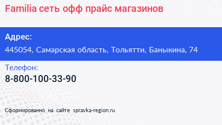 Familia, сеть офф-прайс магазинов по адресу 445054, Самарская область, Тольятти, Баныкина, 74 в дальнейшем Организация, размещена в следующих категориях:
