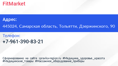 FitMarket по адресу 445024, Самарская область, Тольятти, Дзержинского, 90 в дальнейшем Организация, размещена в следующих категориях: