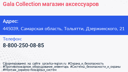Gala Collection, магазин аксессуаров по адресу 445039, Самарская область, Тольятти, Дзержинского, 21 в дальнейшем Организация, размещена в следующих категориях: