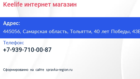 Keelife, интернет-магазин по адресу 445056, Самарская область, Тольятти, 40 лет Победы, 43Б в дальнейшем Организация, размещена в следующих категориях: