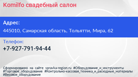 Komilfo, свадебный салон по адресу 445010, Самарская область, Тольятти, Мира, 62 в дальнейшем Организация, размещена в следующих категориях: