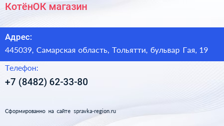 КотёнОК, магазин по адресу 445039, Самарская область, Тольятти, бульвар Гая, 19 в дальнейшем Организация, размещена в следующих категориях: