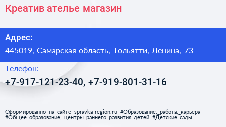 Креатив, ателье-магазин по адресу 445019, Самарская область, Тольятти, Ленина, 73 в дальнейшем Организация, размещена в следующих категориях:
