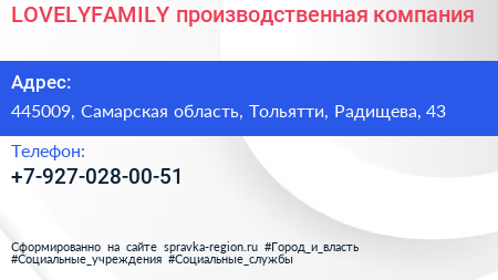 LOVELYFAMILY, производственная компания по адресу 445009, Самарская область, Тольятти, Радищева, 43 в дальнейшем Организация, размещена в следующих категориях: