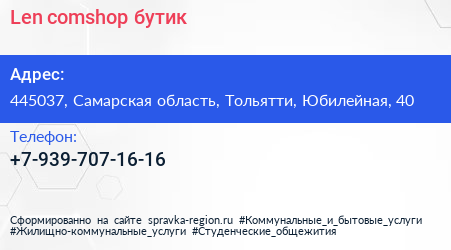 Len.comshop, бутик по адресу 445037, Самарская область, Тольятти, Юбилейная, 40 в дальнейшем Организация, размещена в следующих категориях: