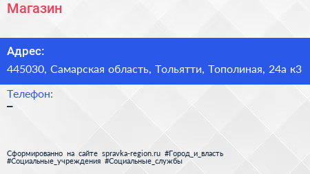 Магазин по адресу 445030, Самарская область, Тольятти, Тополиная, 24а к3 в дальнейшем Организация, размещена в следующих категориях: