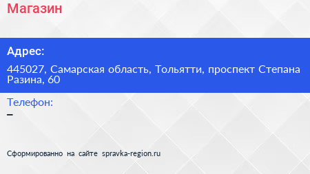 Магазин по адресу 445027, Самарская область, Тольятти, проспект Степана Разина, 60 в дальнейшем Организация, размещена в следующих категориях: