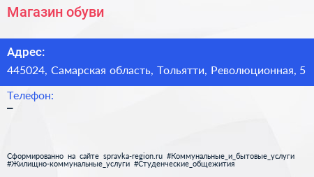 Магазин обуви по адресу 445024, Самарская область, Тольятти, Революционная, 5 в дальнейшем Организация, размещена в следующих категориях: