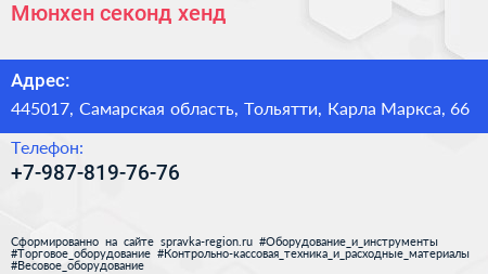 Мюнхен, секонд-хенд по адресу 445017, Самарская область, Тольятти, Карла Маркса, 66 в дальнейшем Организация, размещена в следующих категориях: