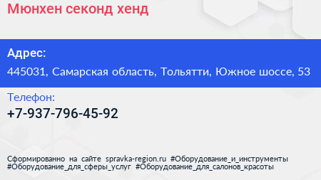 Мюнхен, секонд-хенд по адресу 445031, Самарская область, Тольятти, Южное шоссе, 53 в дальнейшем Организация, размещена в следующих категориях: