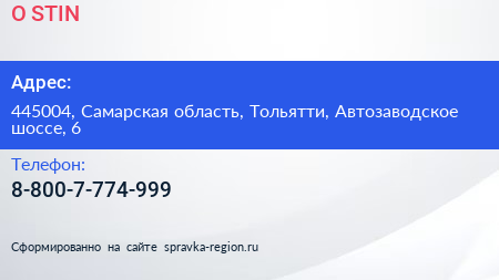 O`STIN по адресу 445004, Самарская область, Тольятти, Автозаводское шоссе, 6 в дальнейшем Организация, размещена в следующих категориях: