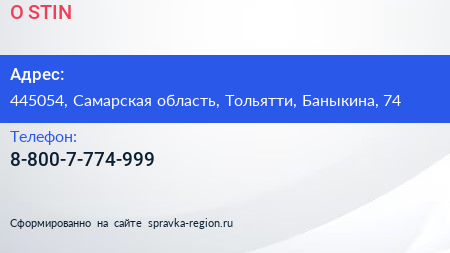 O`STIN по адресу 445054, Самарская область, Тольятти, Баныкина, 74 в дальнейшем Организация, размещена в следующих категориях: