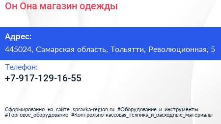 Он & Она, магазин одежды по адресу 445024, Самарская область, Тольятти, Революционная, 5 в дальнейшем Организация, размещена в следующих категориях:
