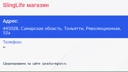 SlingLife, магазин по адресу 445028, Самарская область, Тольятти, Революционная, 52а в дальнейшем Организация, размещена в следующих категориях: