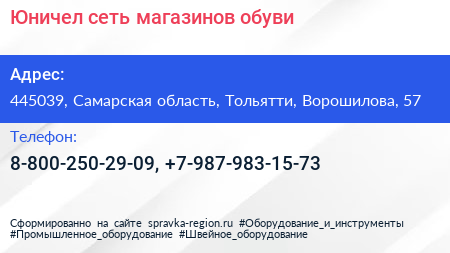 Юничел, сеть магазинов обуви по адресу 445039, Самарская область, Тольятти, Ворошилова, 57 в дальнейшем Организация, размещена в следующих категориях: