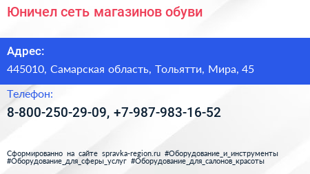 Юничел, сеть магазинов обуви по адресу 445010, Самарская область, Тольятти, Мира, 45 в дальнейшем Организация, размещена в следующих категориях: