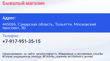Бывалый, магазин по адресу 445026, Самарская область, Тольятти, Московский проспект, 30 в дальнейшем Организация, размещена в следующих категориях: