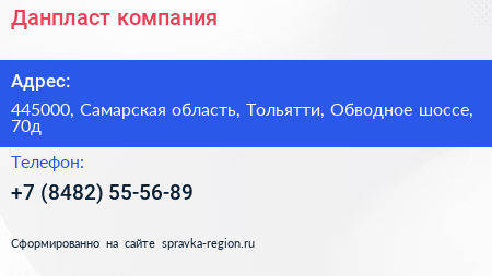 Данпласт, компания по адресу 445000, Самарская область, Тольятти, Обводное шоссе, 70д в дальнейшем Организация, размещена в следующих категориях: