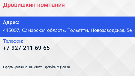Дровишкин, компания по адресу 445007, Самарская область, Тольятти, Новозаводская, 5е в дальнейшем Организация, размещена в следующих категориях:
