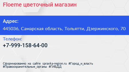 Floeme, цветочный магазин по адресу 445036, Самарская область, Тольятти, Дзержинского, 70 в дальнейшем Организация, размещена в следующих категориях: