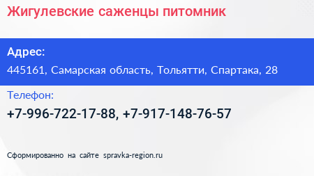 Жигулевские саженцы, питомник по адресу 445161, Самарская область, Тольятти, Спартака, 28 в дальнейшем Организация, размещена в следующих категориях: