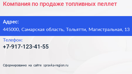 Компания по продаже топливных пеллет по адресу 445000, Самарская область, Тольятти, Магистральная, 13 в дальнейшем Организация, размещена в следующих категориях: