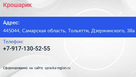 Крошарик по адресу 445044, Самарская область, Тольятти, Дзержинского, 38а в дальнейшем Организация, размещена в следующих категориях: