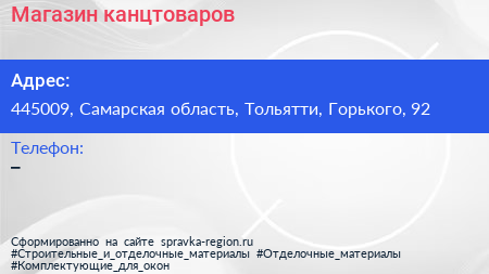Магазин канцтоваров по адресу 445009, Самарская область, Тольятти, Горького, 92 в дальнейшем Организация, размещена в следующих категориях: